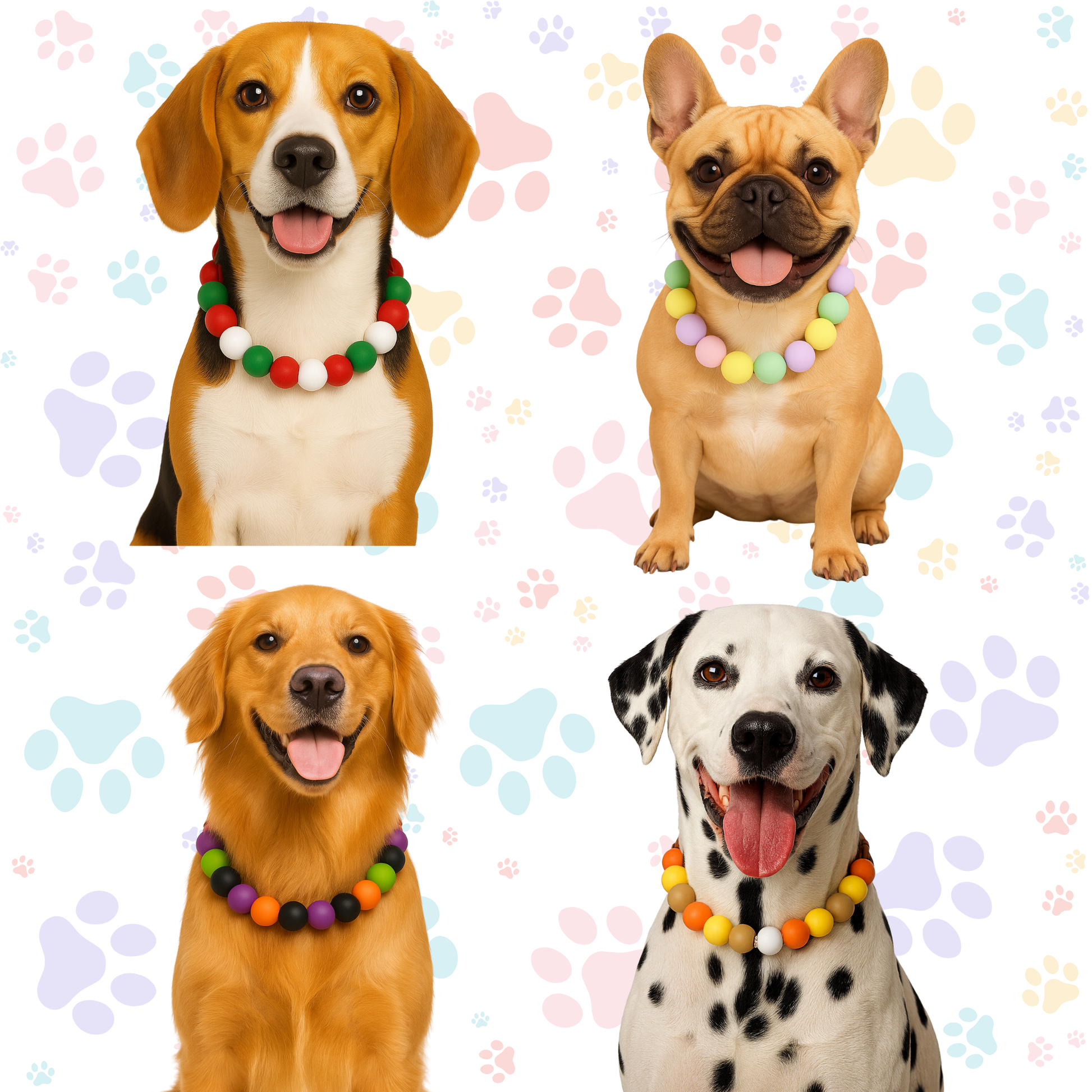 Give your furry friend a fun and functional accessory with this colorful silicone bead pet collar, available in six pastel color styles. Each collar is handmade with high-quality silicone beads that are soft, lightweight, and comfortable for everyday wear. This collection have all the seasons of the year: valentines, Saint Patrick, Easter, 4th July, Memorial Day, Summer, Rainbow, Halloween, Thanksgiving, Christmas and more.
