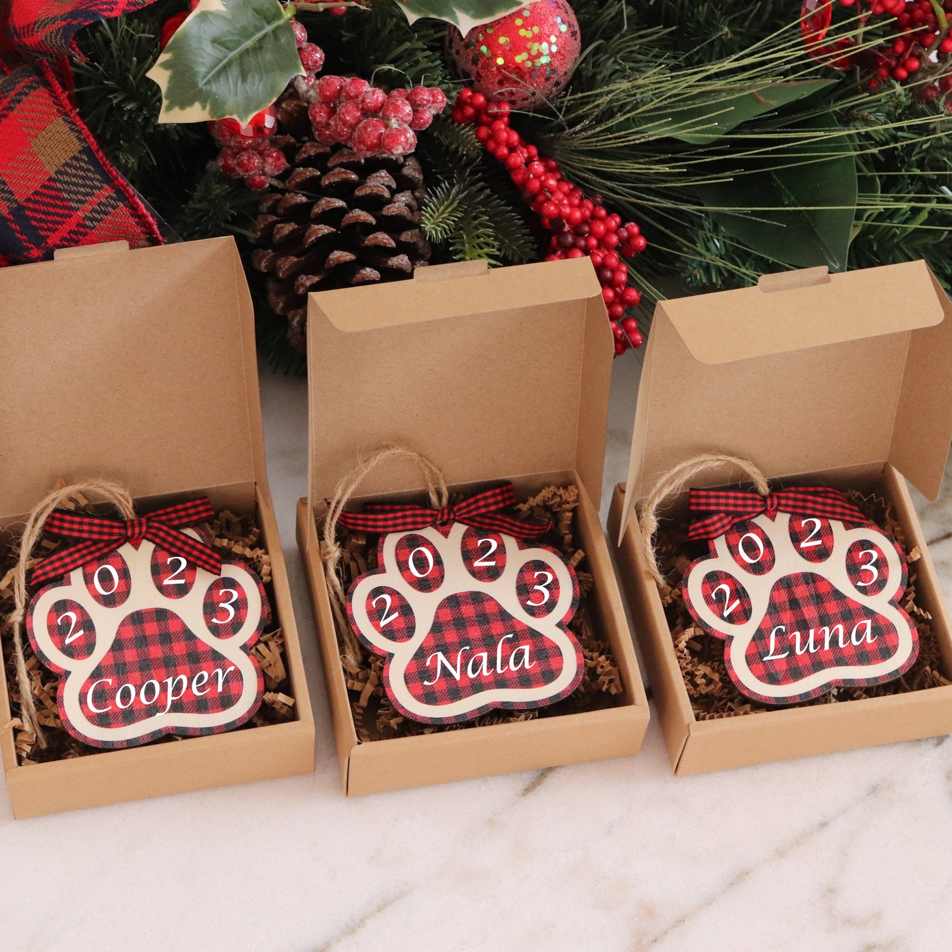 Custom dog name paw print ornament is a perfect dog first Christmas gift or dog owner gift. Some people use it as dog remembrance ornament or in memory dog for home decor.