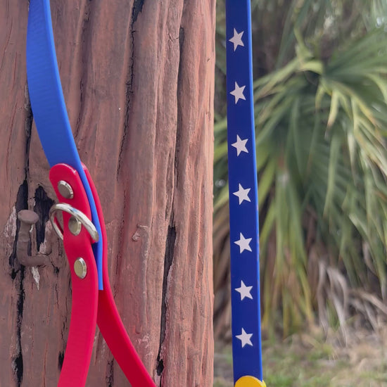 Our Venezuela Leash offers unparalleled convenience for your daily walks, runs, and adventures with your furry friend. Crafted with a luxurious vegan leather alternative. The 3/4" wide, two-tone, Perfect for outdoor adventures, night walk park visits, waterproof design not only catches the eye but withstands the elements, ensuring lasting use. It combines durability and easy maintenance with a soft and supple feel. Its two-tone waterproof design not only catches the eye but withstands the elements, ensuring lasting use.